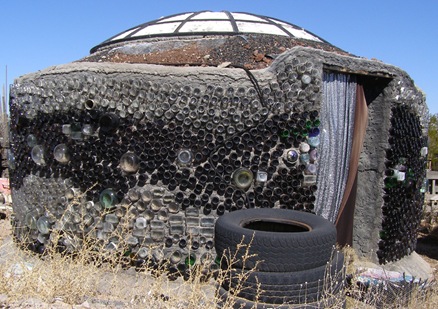 Usar botellas de cristal o plastico para realizar la estructura es quizá la forma mas original que en encontrado en casas alternativas. y aunque me parece una idea fantastica no me veo capacitada para hacerlo sin miedo al derrumbe, pero aqui teneis unas muestras de gente que si se atrevió a hacerlas, solo son ejemplos porque en la red se pueden encontrar autenticas maravillas con esta técnica.
